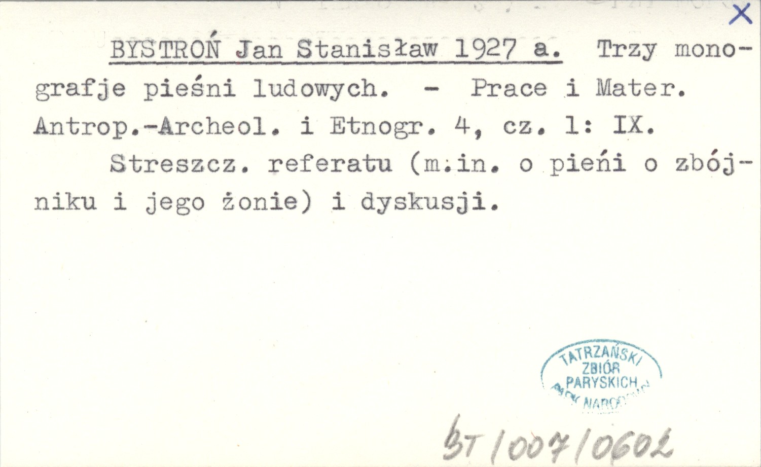 Prace i Materiały Antropologiczno-Archeologiczne i Etnograficzne, 4, cz. 1: IX. Streszczenie referatu (m. in. o pieśni o zbójniku i jego żonie) i dyskusji.