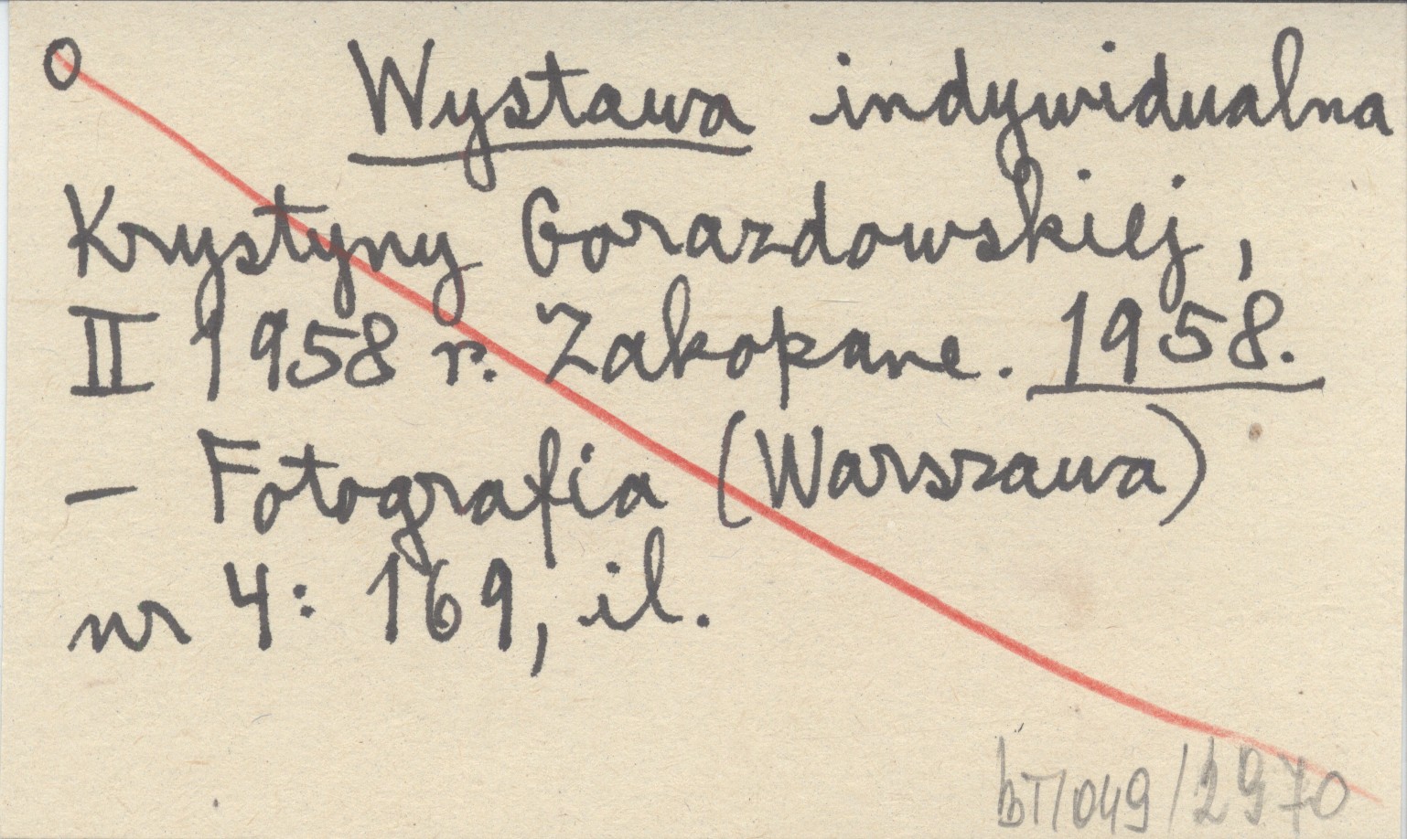Wystawa indywidualna Krystyny Gorazdowskiej, II 1958 r. Zakopane. 1958