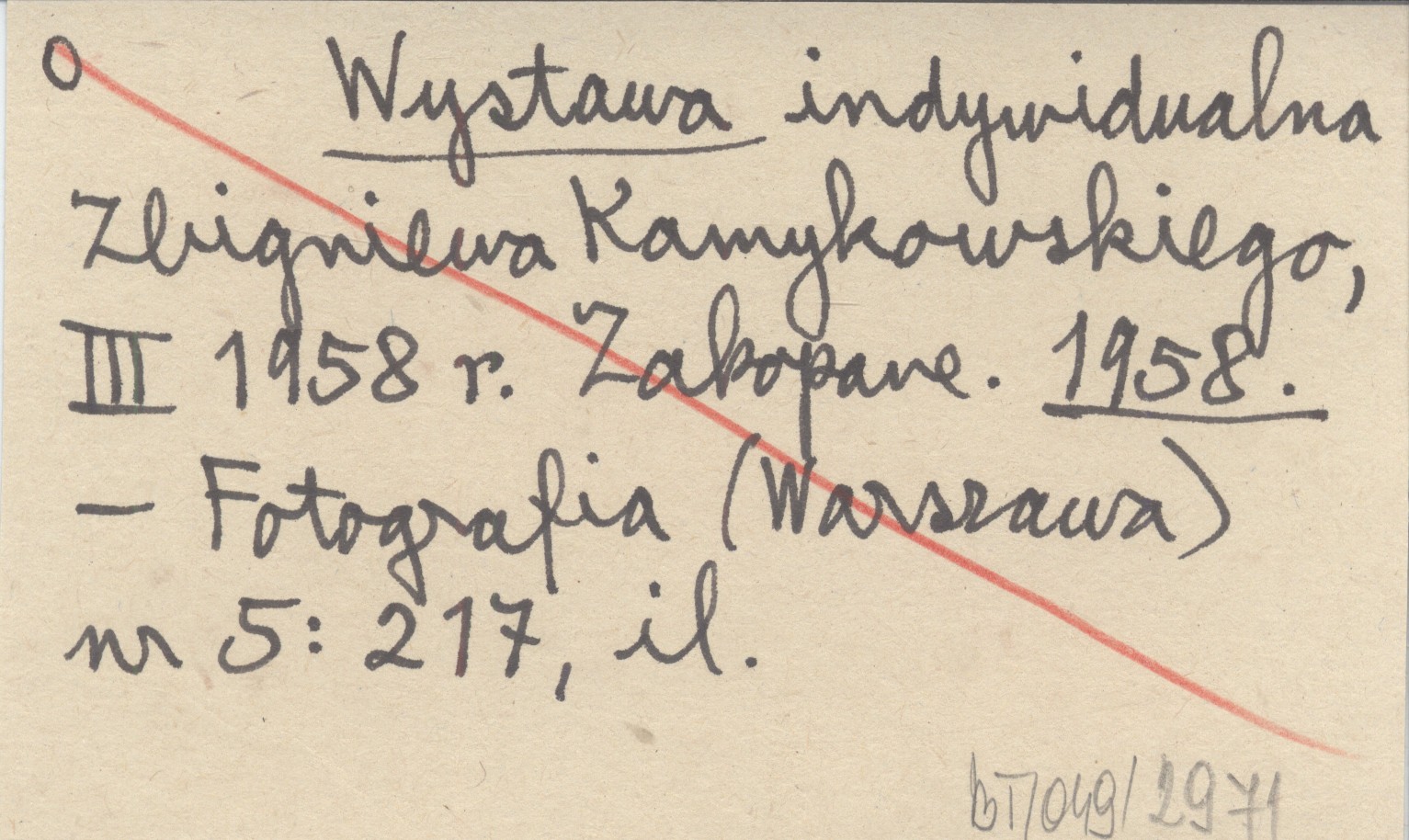 Wystawa indywidualna Zbigniewa Kamykowskiego, III 1958 r. Zakopane. 1958