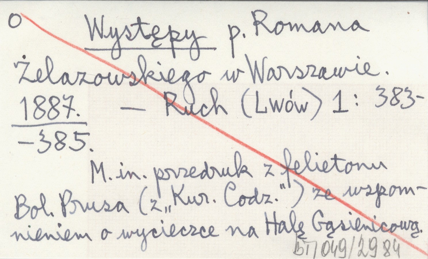 Ruch (Lwów) , 1: 383-385. M.in. przedruk z felietonu Bol. Prusa (z "Kur. Codz.") ze wspomnieniem o wycieczce na Halę Gąsienicową.