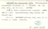 BYSTROŃ Jan Stanisław 1929 Bibljografja etnografji polskiej. I.
