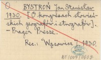 BYSTROŃ Jan Stanisław 1930 [O kongresach słowiańskich geografów i etnografów.]