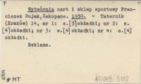 Wytwórnia nart i sklep sportowy Franciszek Bujak, Zakopane. 1930