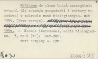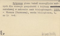 Wytyczne planu badań szczególnie ważnych dla rozwoju gospodarki i kultury narodowej w zakresie nauk biologicznych. 1952
