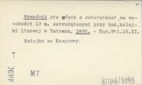 Wywrócił się wózek z robotnikami na wysokości 12 m. zatrudnionymi przy bud,kolejki linowej w Tatrach. 1935