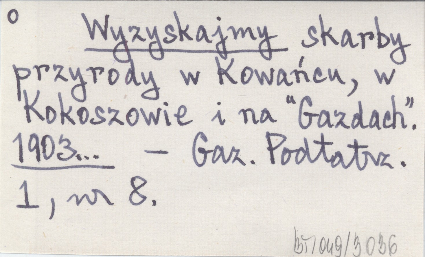 Wyzyskajmy skarby przyrody w Kowańcu, w Kokoszowie i na "Gazdach". 1903...