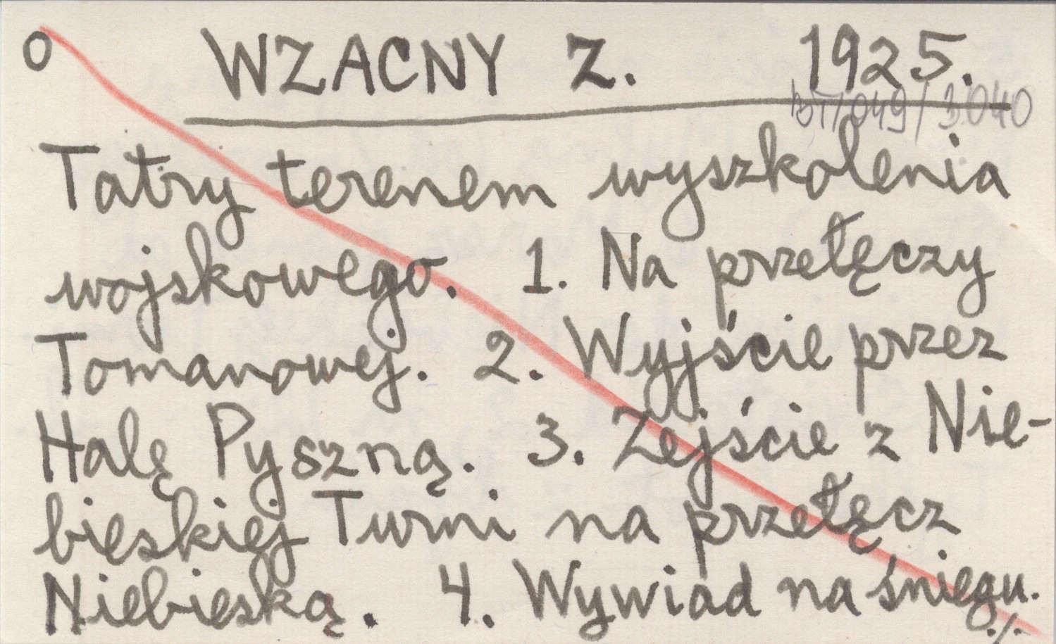 WZACNY Z. 1925 Tatry terenem wyszkolenia wojskowego. 1. Na przełęczy Tomanowej. 2. Wyjście przez Halę Pyszną. 3. Zejście z Niebieskiej Turni na przełęcz Niebieską. 4. Wywiad na śniegu. 5. Wyjście nową drogą na przełęcz Mylną (od Zmarzłego Stawu). 6. Marsz granią od Świnicy do Niebieskiej Turni.