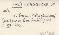 (wz) ZADZIORKO Witold Gazeta Krakowska, dod. Gazeta Zakopiańska Przed 5 XII 1993.