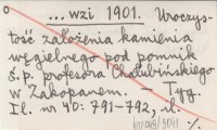 ...wzi 1901 Uroczystość założenia kamienia węgielnego pod pomnik ś.p. profesora Chałubińskiego w Zakopanem.