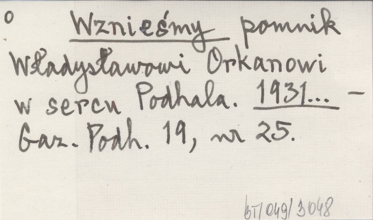 Wznieśmy pomnik Władysławowi Orkanowi w sercu Podhala. 1931...
