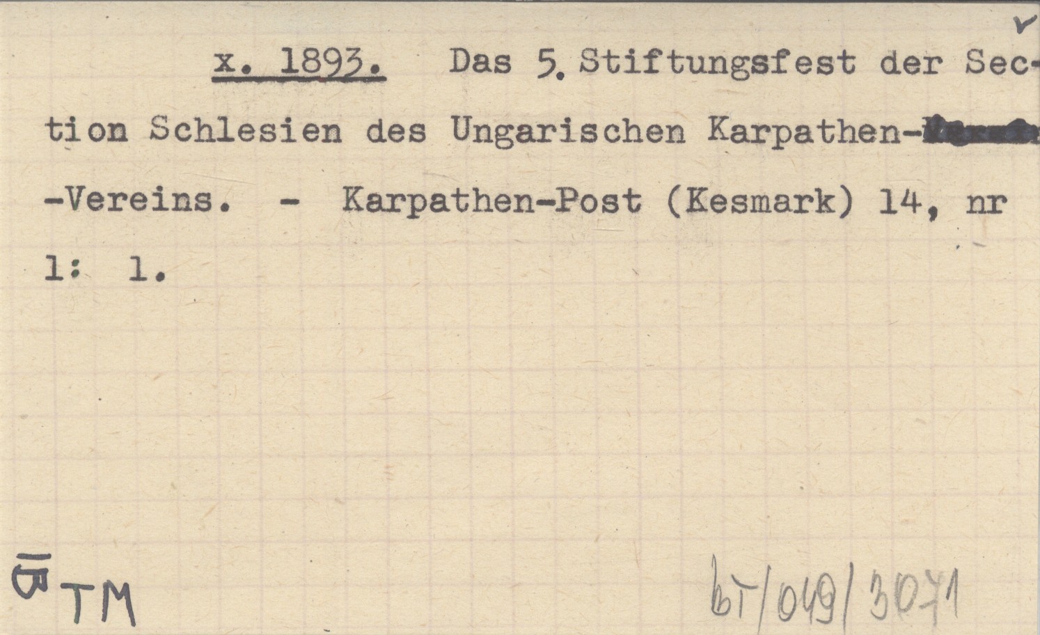 x. 1893 Das 5. Stiftungsfest der Section Schlesien des Ungarischen Karpathen-Vereins.
