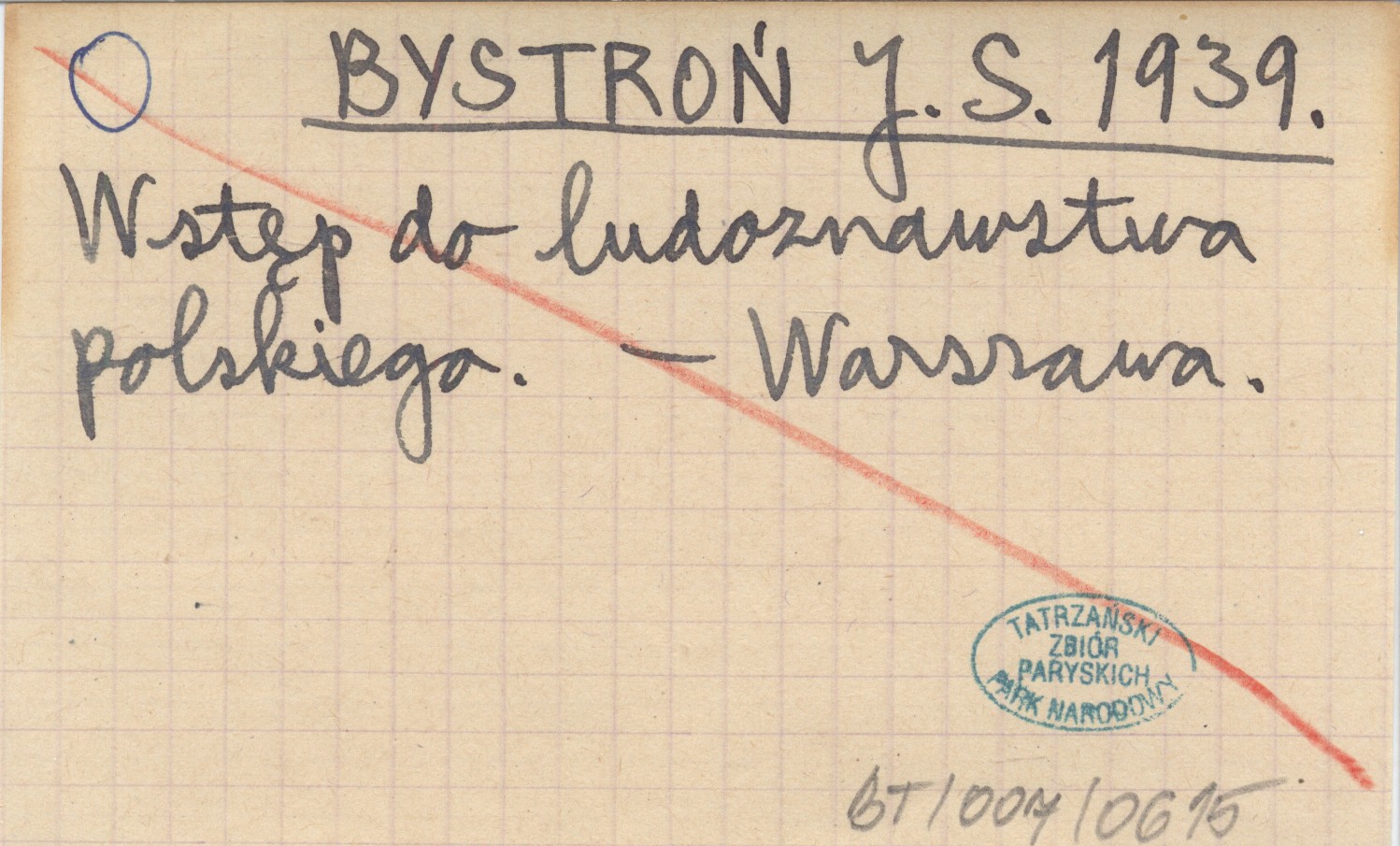 BYSTROŃ J. S. 1939 Wstęp do ludoznawstwa polskiego.