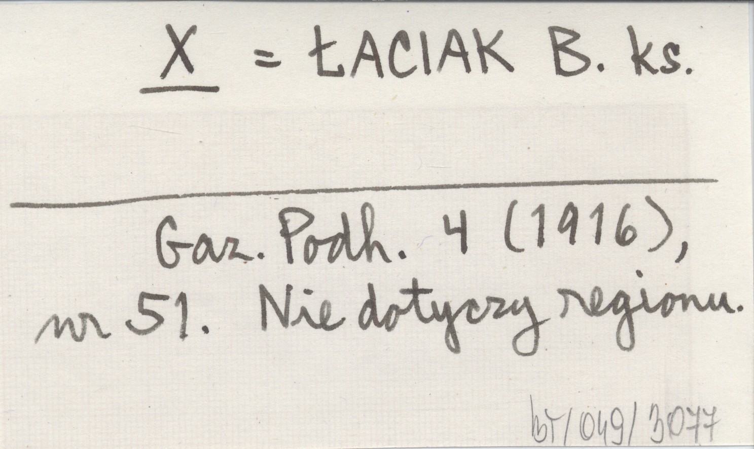 X ŁACIAK B. ks. Gazeta Podhalańska 4 (1916), nr 51. Nie dotyczy regionu.