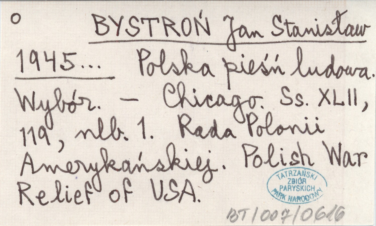 BYSTROŃ Jan Stanisław 1945... Polska pieśń ludowa. Wybór.