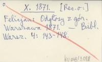 X. 1871 Felicjan: Odgłosy z gór. Warszawa 1871.