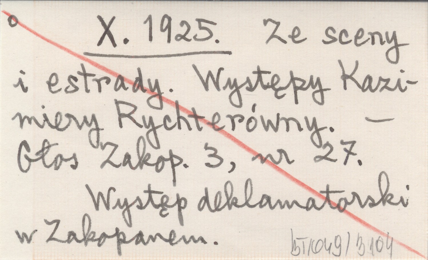 X. 1925 Ze sceny i estrady. Występy Kazimiery Rychterówny.