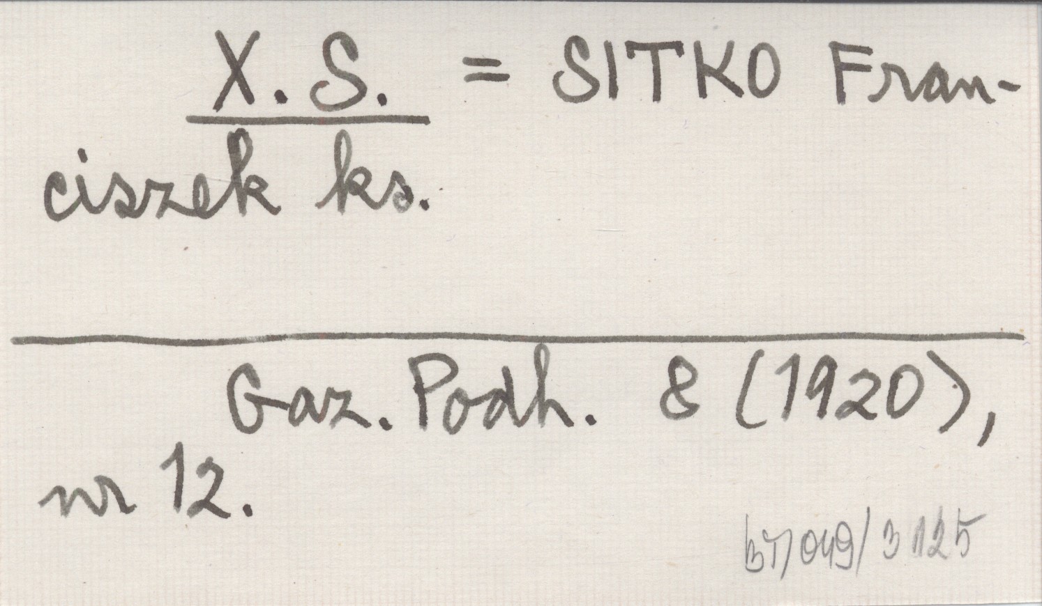 X. S. SITKO Franciszek ks. Gazeta Podhalańska 8 (1920), nr 12.