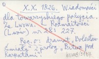 X. X. 1826 Wiadomości dla towarzyskiego pożycia. Ze Lwowa.