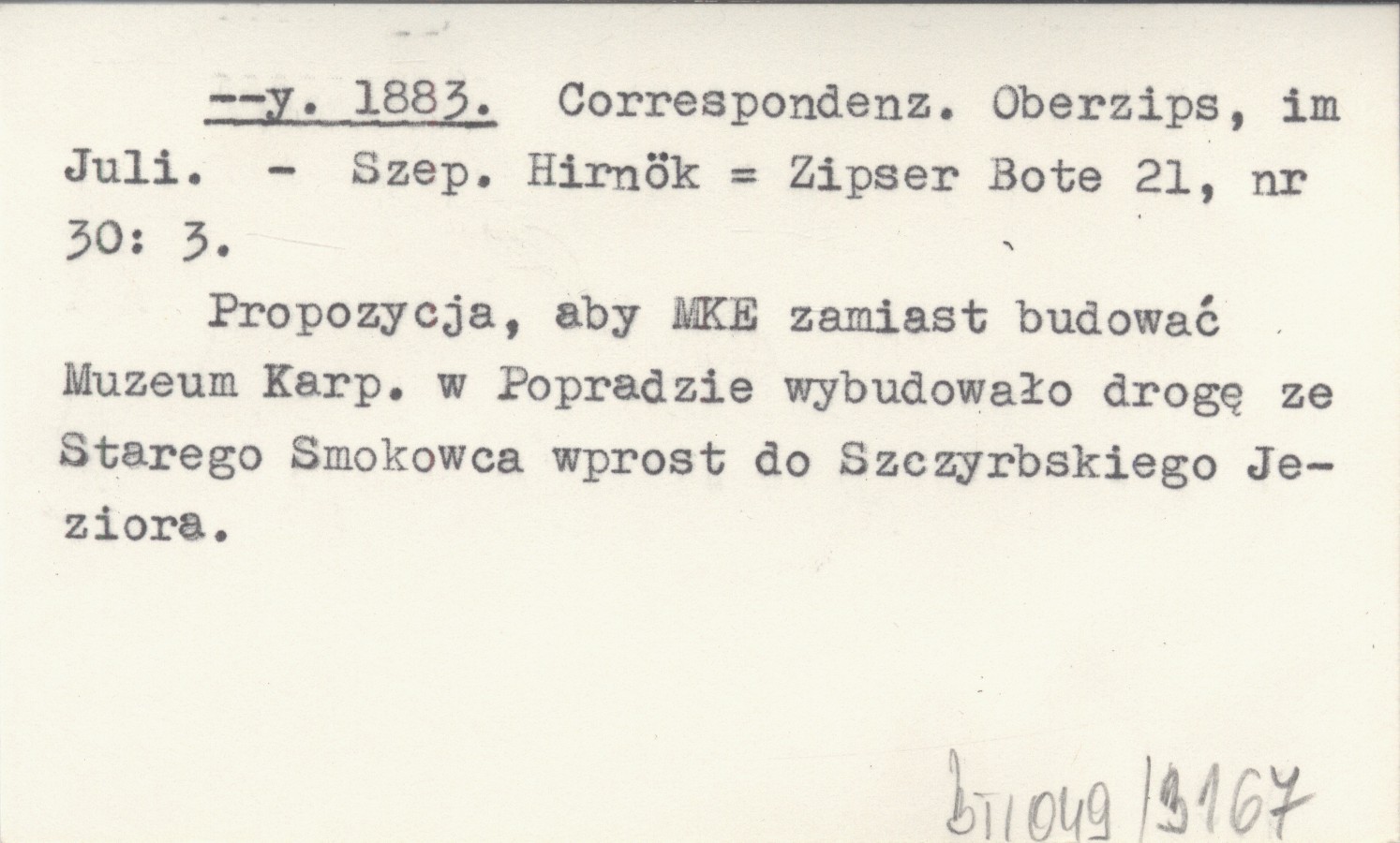 Szepesi Hirnök = Zipser Bote, 21, nr 30: 3. Propozycja, aby MKE zamiast budować Muzeum Karp. w Popradzie wybudowało drogę ze Starego Smokowca wprost do Szczyrbskiego Jeziora.