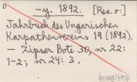 -y. 1892 Jahrbuch des Ungarischen Karpathenvereins 19 (1892).