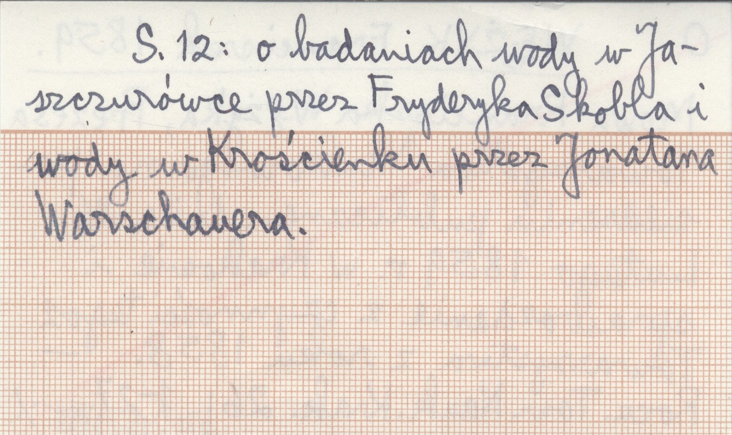 Rocznik Towarzystwa Naukowego Krakowskiego, 26: 1-27. S. 12: o badaniach wody w Jaszczurówce przez Fryderyka Skobla i wody w Krościenku przez Jonatana Warschauera.