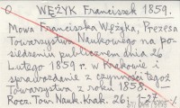 WĘŻYK Franciszek 1859 Mowa Franciszka Wężyka, Prezesa Towarzystwa Naukowego na posiedzeniu publicznem dnia 26 Lutego 1859 r. w Krakowie i sprawozdanie z czynności tegoż Towarzystwa z roku 1858.