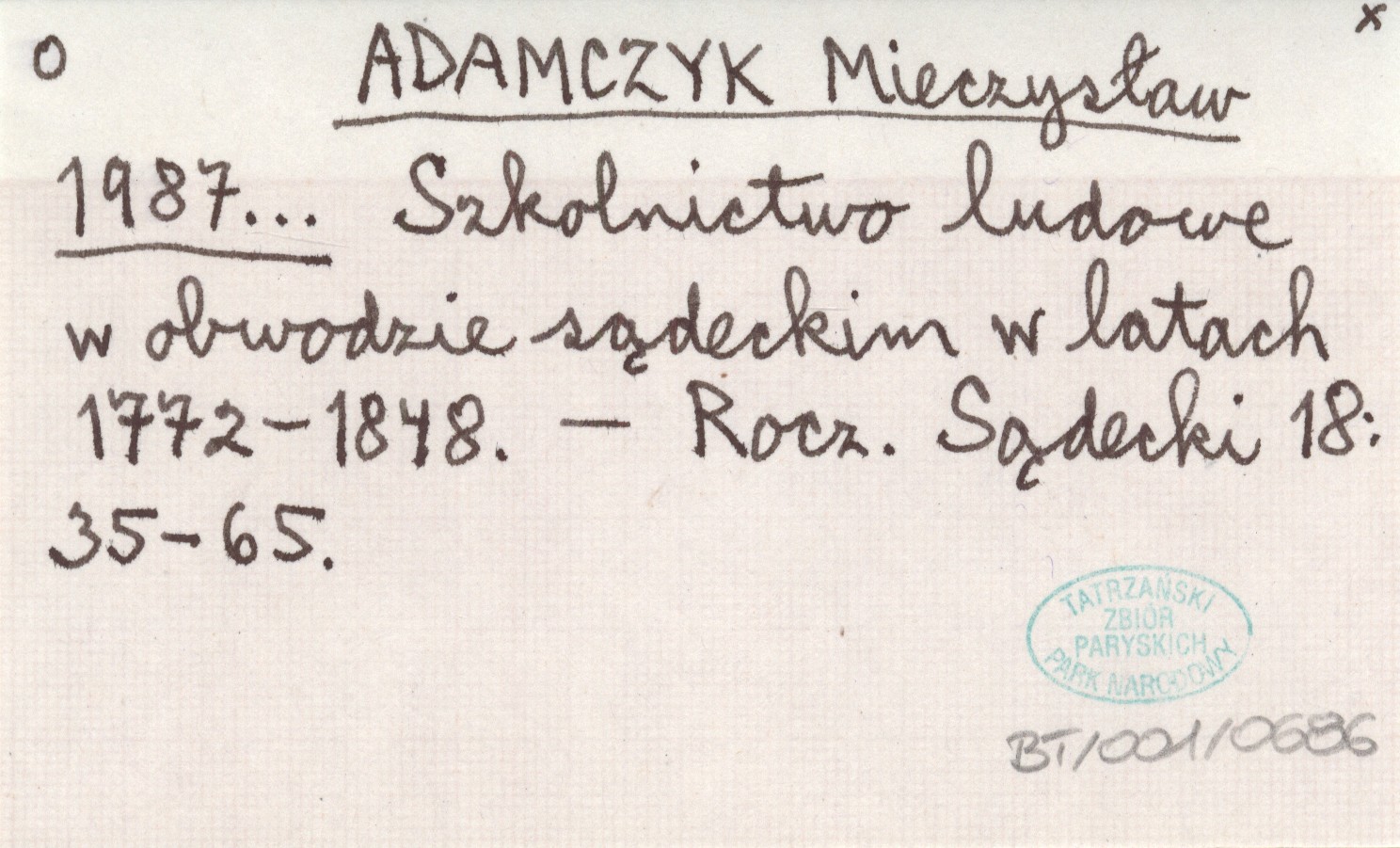 ADAMCZYK Mieczysław 1987... Szkolnictwo ludowe w obwodzie sądeckim w latach 1772-1848.