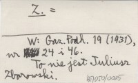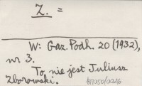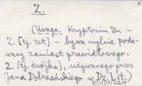 Z. Kryptonim ten - Z. [tj. zet] - bywa mylnie podawany zamiast prawidłowego: 2. [tj. dwójka], używanego przez Jana Dobrzańskiego w Dz. Lit.