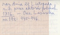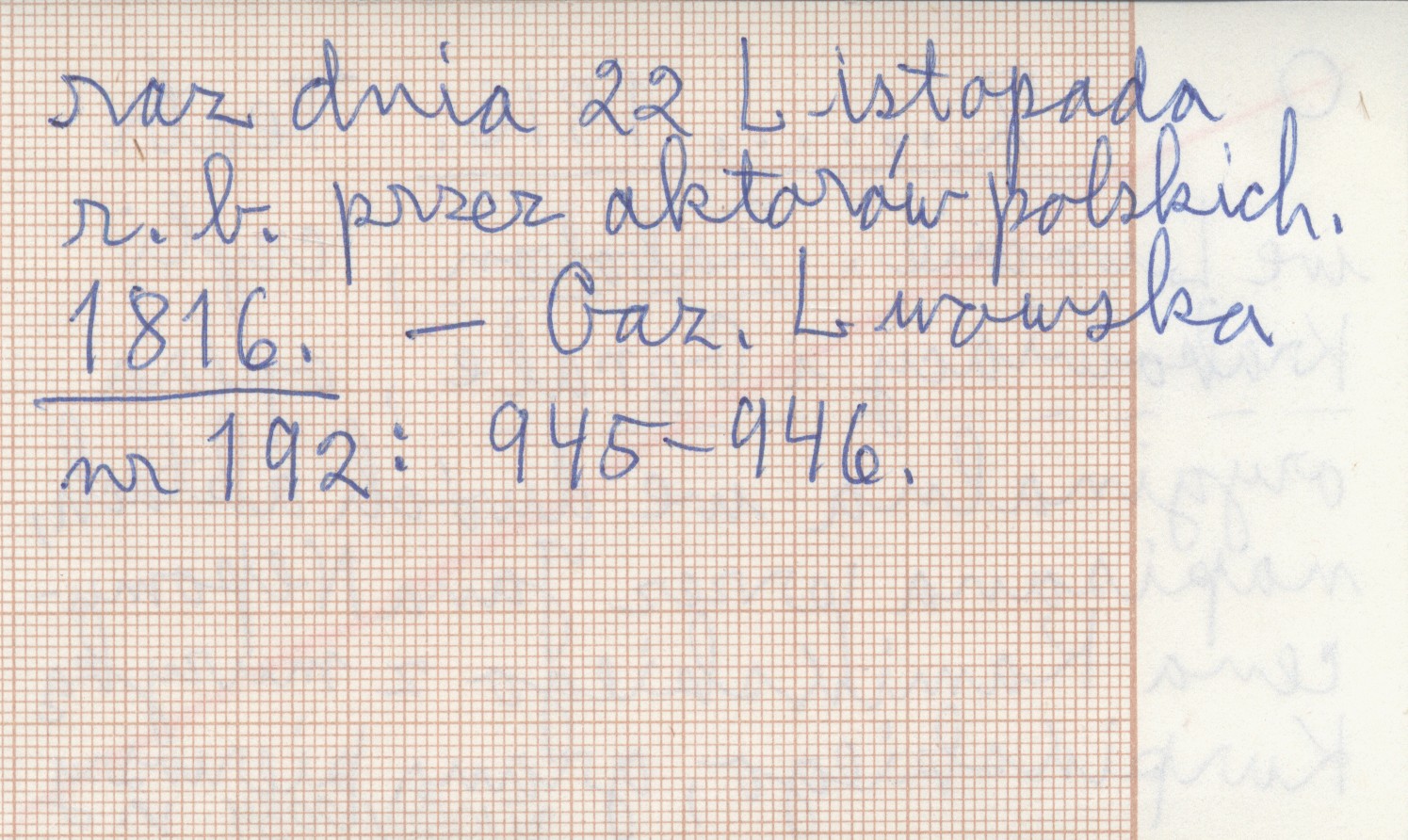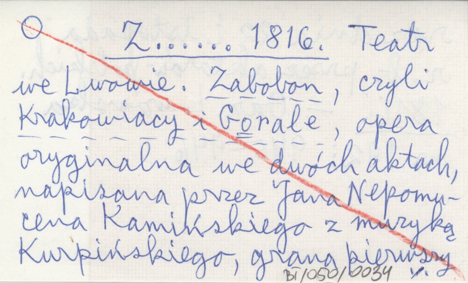 Z...... 1816 Teatr we Lwowie. Zabobon, czyli Krakowiacy i Gorale, opera oryginalna we dwóch aktach, napisana przez Jana Nepomucena Kamińskiego z muzyką Kurpińskiego, grana pierwszy raz dnia 22 Listopada r.b. przez aktorów polskich.