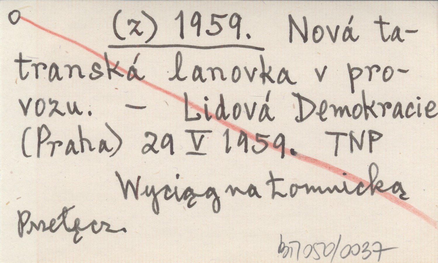 Lidová Demokracie (Praha) , 29 V 1959. Wyciąg na Łomnicką Przełęcz.