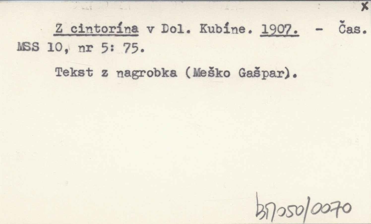 Časopis Muzeálnej Slovenskej Spoločnosti, 10, nr 5: 75. Tekst z nagrobka (Meško Gašpar).