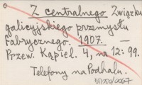 Z centralnego Związku galicyjskiego przemysłu fabrycznego. 1907