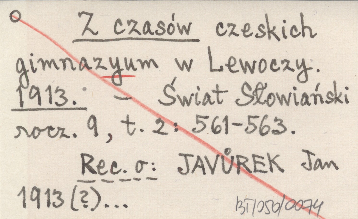 Świat Słowiański, R. 9, t. 2: 561-563. Rec. o: JAVŮREK Jan 1913(?)...