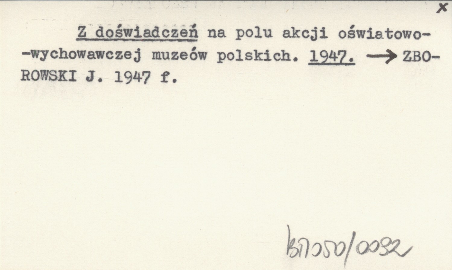 Z doświadczeń na polu akcji oświatowo-wychowawczej muzeów polskich. 1947