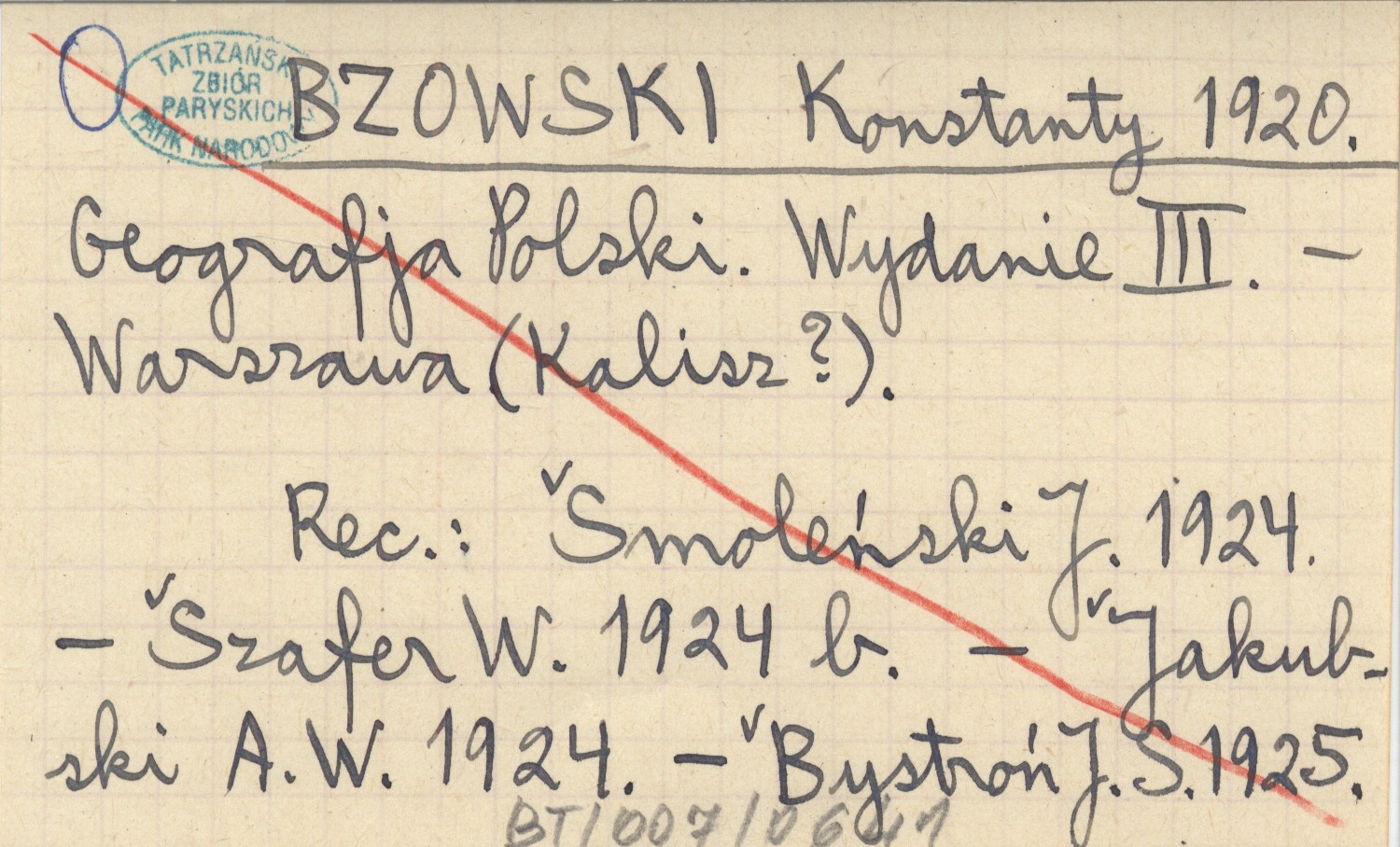 WYD: 3 Warszawa ; Kalisz? ; , REC: SMOLEŃSKI J. 1924 ; SZAFER W. 1924 b ; JAKUBSKI A. W. 1924 ; BYSTROŃ J. S. 1925 ;