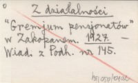 Z działalności "Gremjum pensjonatów" w Zakopanem. 1927