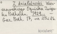 Z działalności Warszawskiego Ogniska Związku Podhalan. 1929...