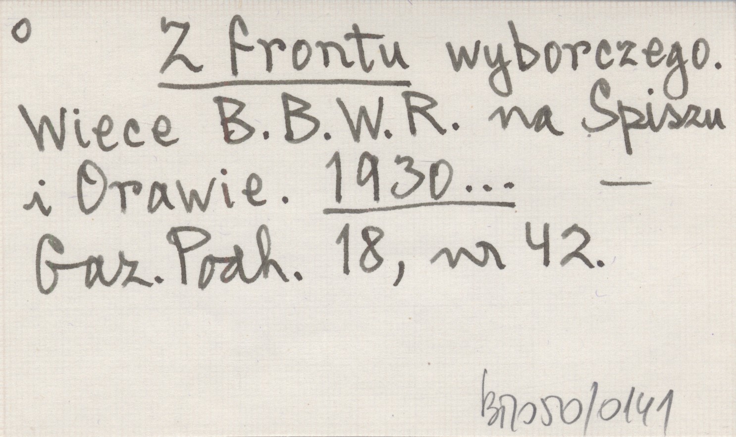 Z frontu wyborczego. Wiece B.B.W.R. na Spiszu i Orawie. 1930...