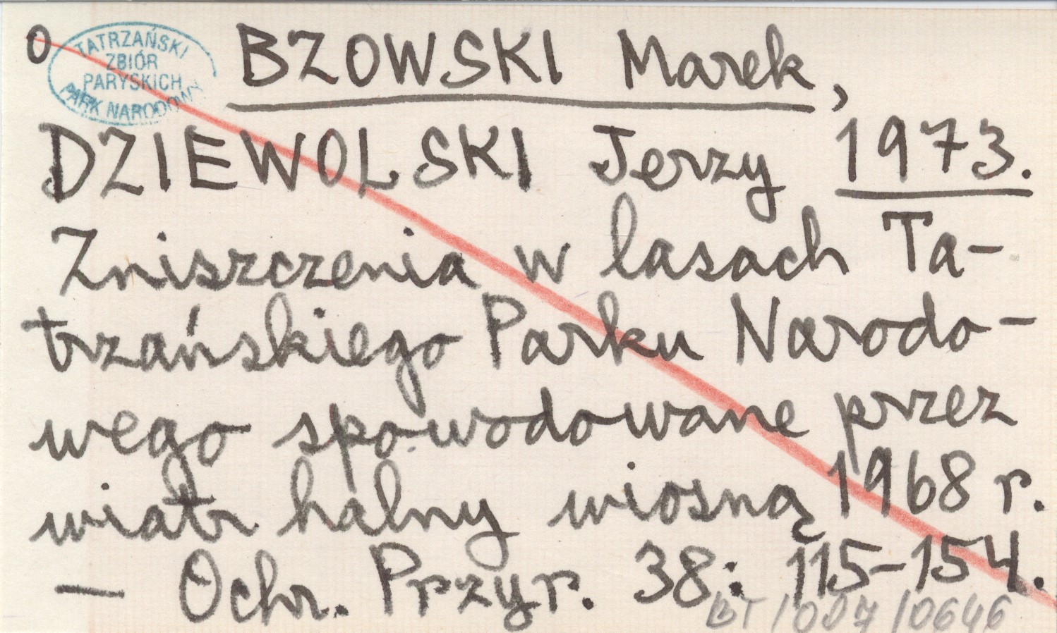 BZOWSKI Marek DZIEWOLSKI, Jerzy. ; 1973 Zniszczenia w lasach Tatrzańskiego Parku Narodowego spowodowane przez wiatr halny wiosną 1968 r.