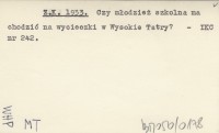 Z.K. 1933 Czy młodzież szkolna ma chodzić na wycieczki w Wysokie Tatry?