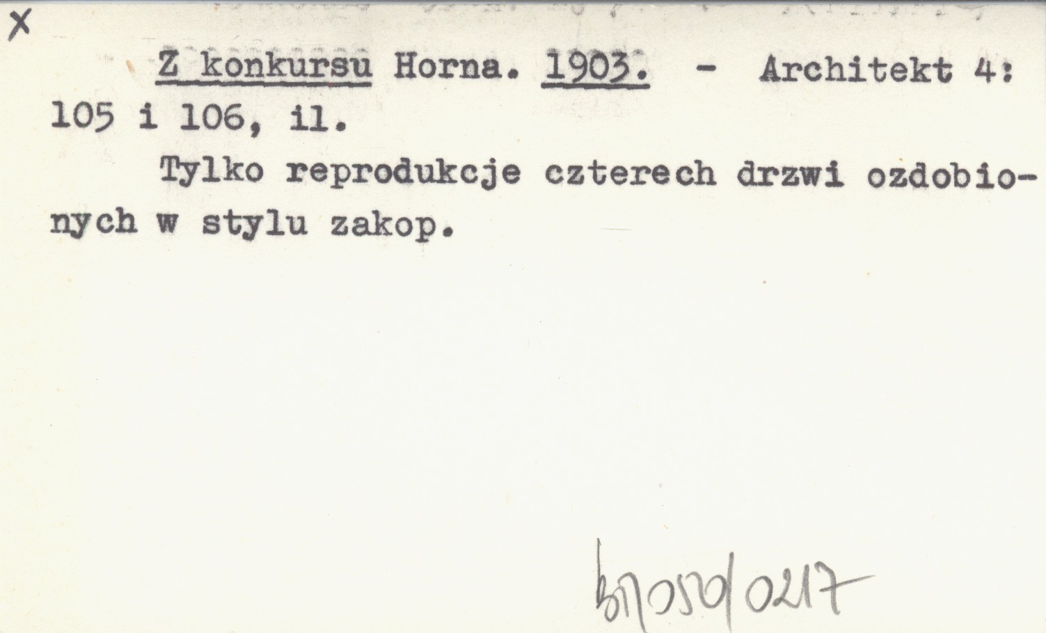 Architekt, 4: 105, 106, il. Tylko reprodukcje czterech drzwi ozdobionych w stylu zakopiańskim.