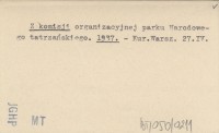 Z Komisji organizacyjnej parku narodowego tatrzańskiego. 1937 a