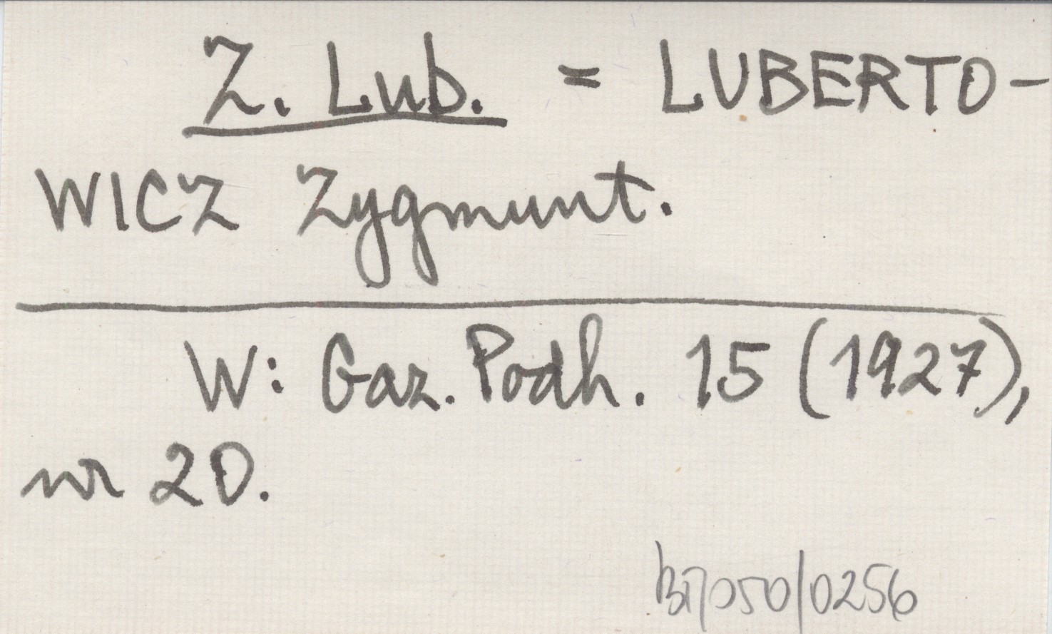 Z. Lub. LUBERTOWICZ Zygmunt Gazeta Podhalańska 15 (1927), nr 20.