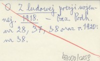 Z ludowej poezji wojennej. 5. Pozdrowienia z frontu. 1919...
