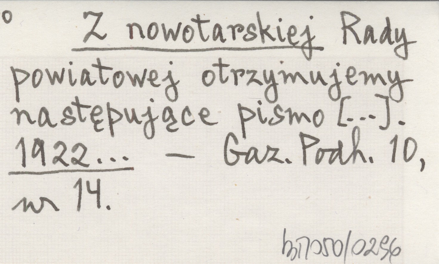 Z nowotarskiej Rady powiatowej otrzymujemy następujące pismo [...]. 1922...
