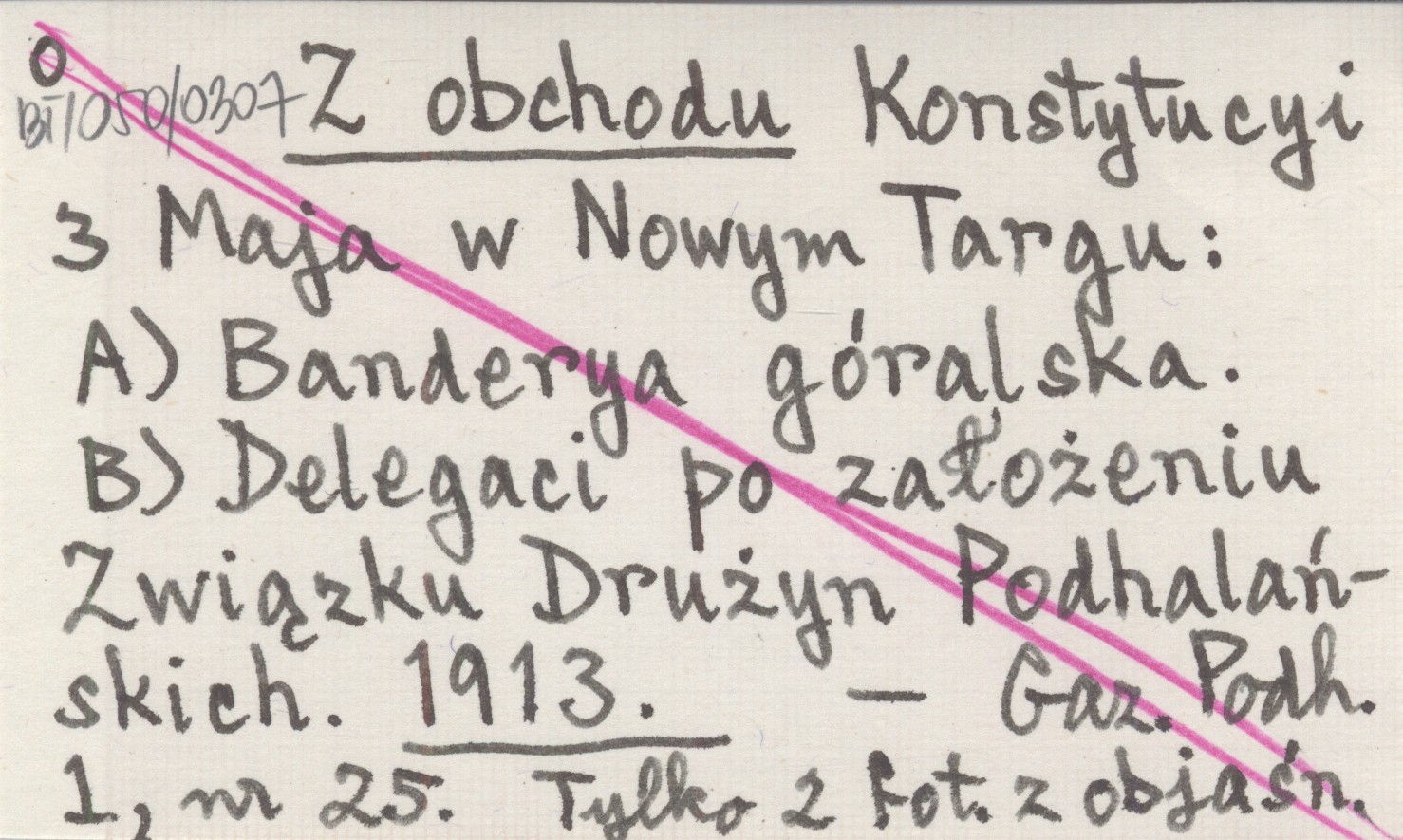 Z obchodu Konstytucyi 3 Maja w Nowym Targu: A) Banderya góralska. B) Delegaci po założeniu Związku Drużyn Podhalańskich. 1913