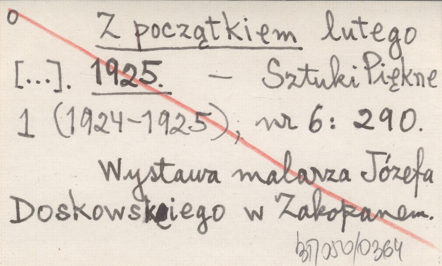 Sztuki Piękne, 1 (1924-1925), nr 6: 290. Wystawa malarza Józefa Doskowskiego w Zakopanem.