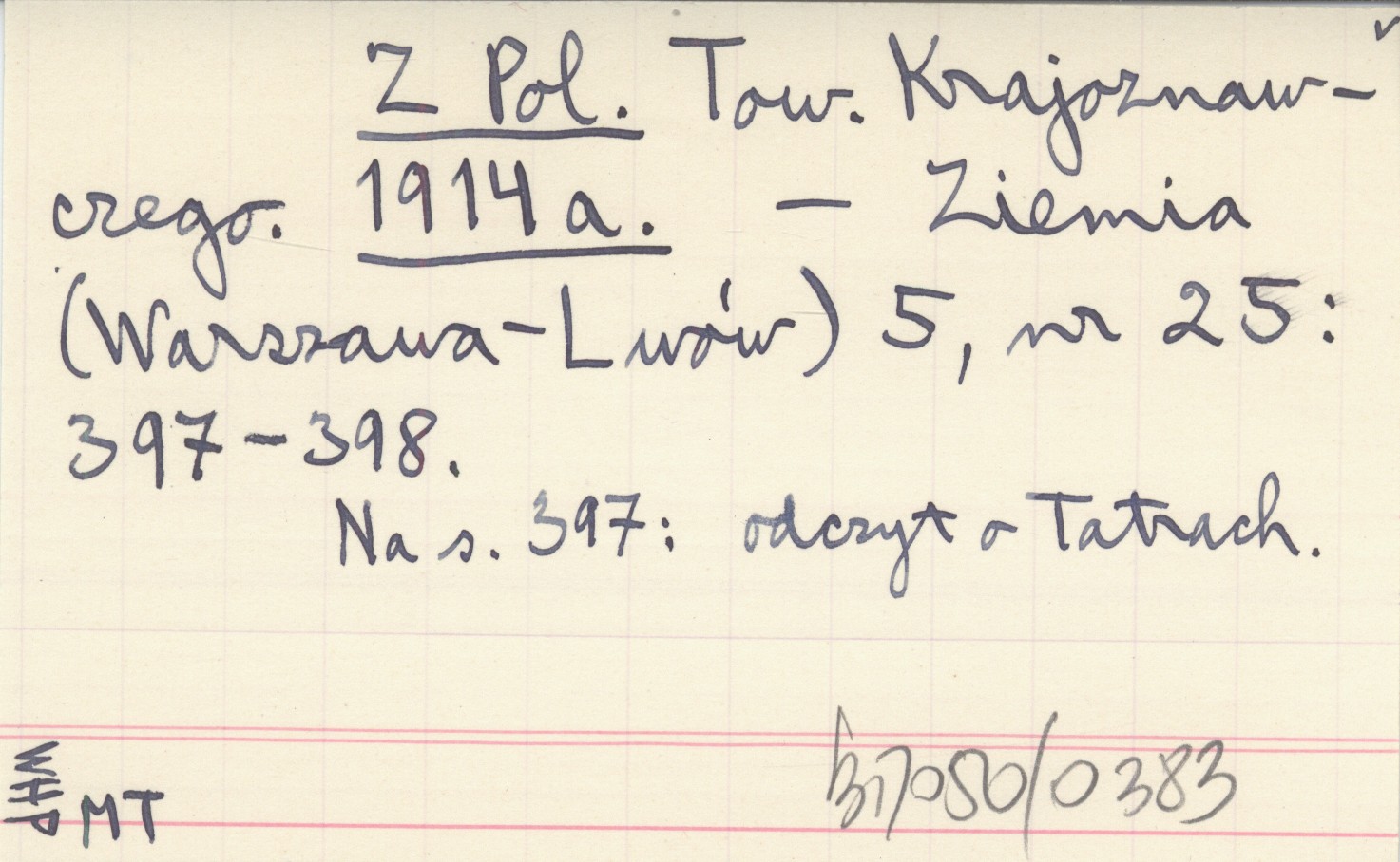 Ziemia (Warszawa ; Lwów ;) , 5, nr 25: 397-398. Na s. 397: odczyt o Tatrach.