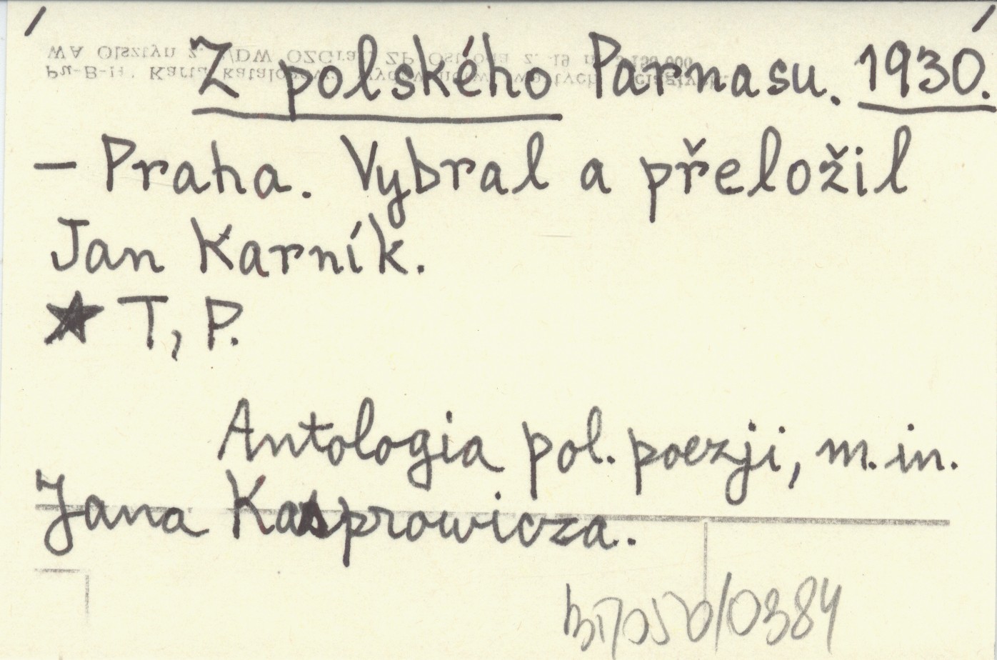 Praha , Antologia polskiej poezji, m. in. Jana Kasprowicza. Vybral a přeložil Jan Karník.