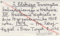 Z Polskiego Towarzystwa balneologicznego w Krakowie. XIV. Posiedzenie Wydziału w dniu 14-go października 1908 roku. 1909